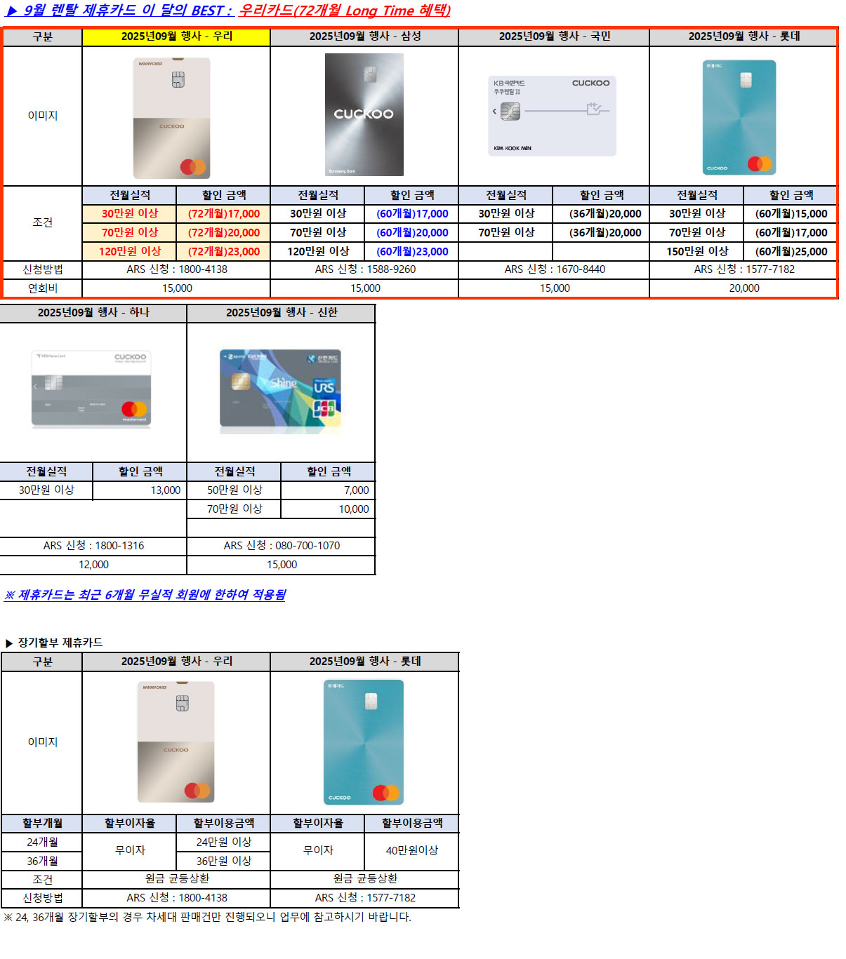 제휴카드 할인 적용시 월 렌탈료 : 6,900원